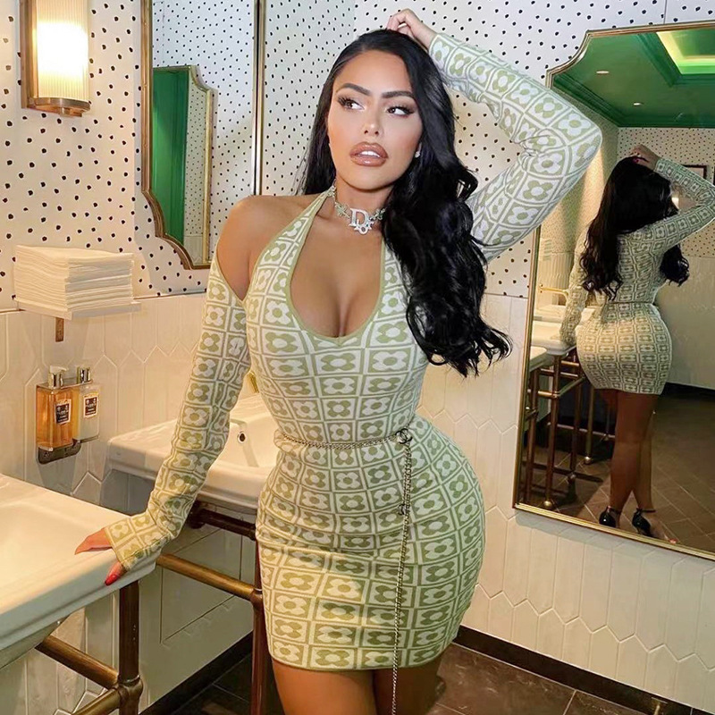 Mesh Tie-dye Printed Off-shoulder Slit Dress Summer INS Fashion Long Dress Party Womens Clothing